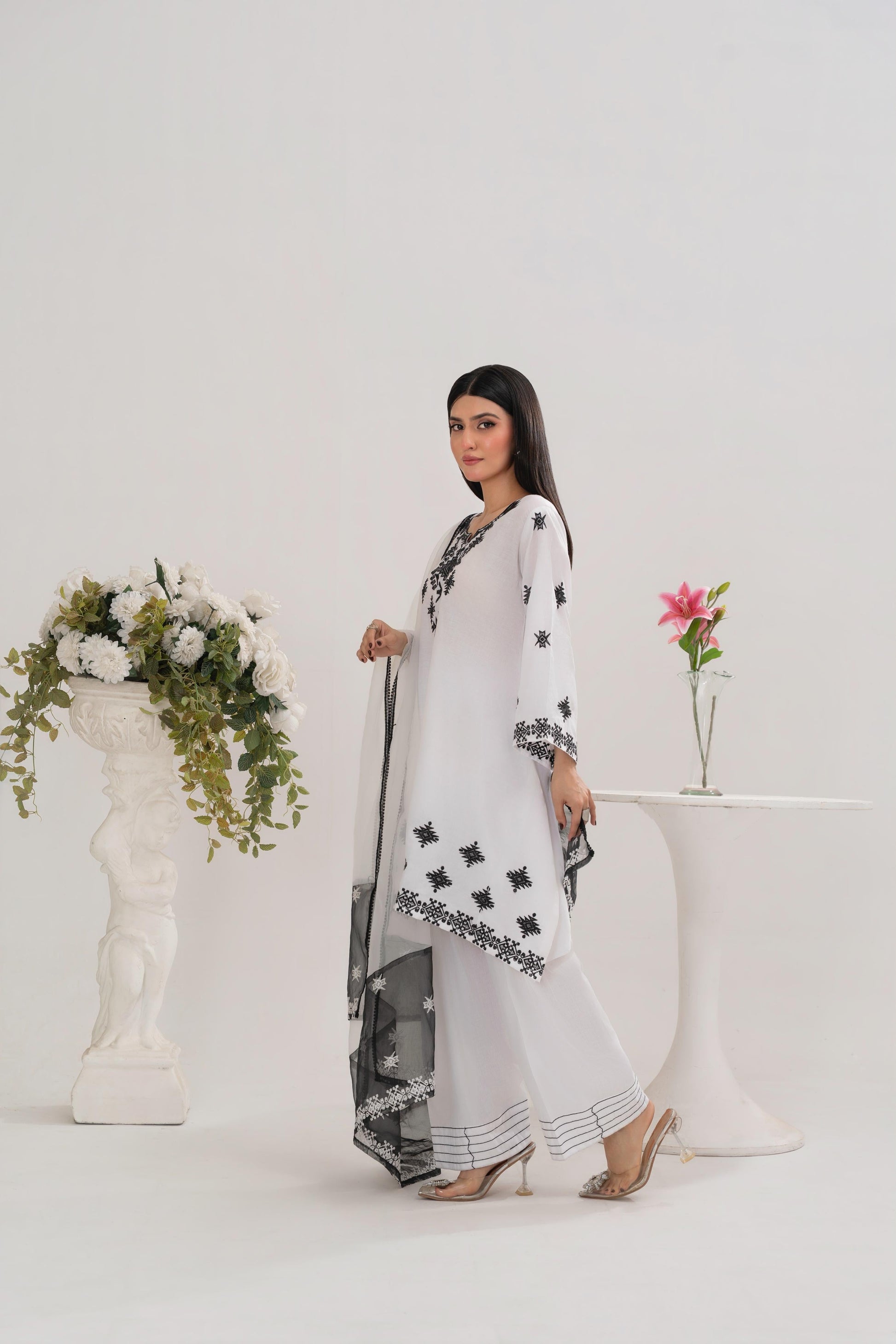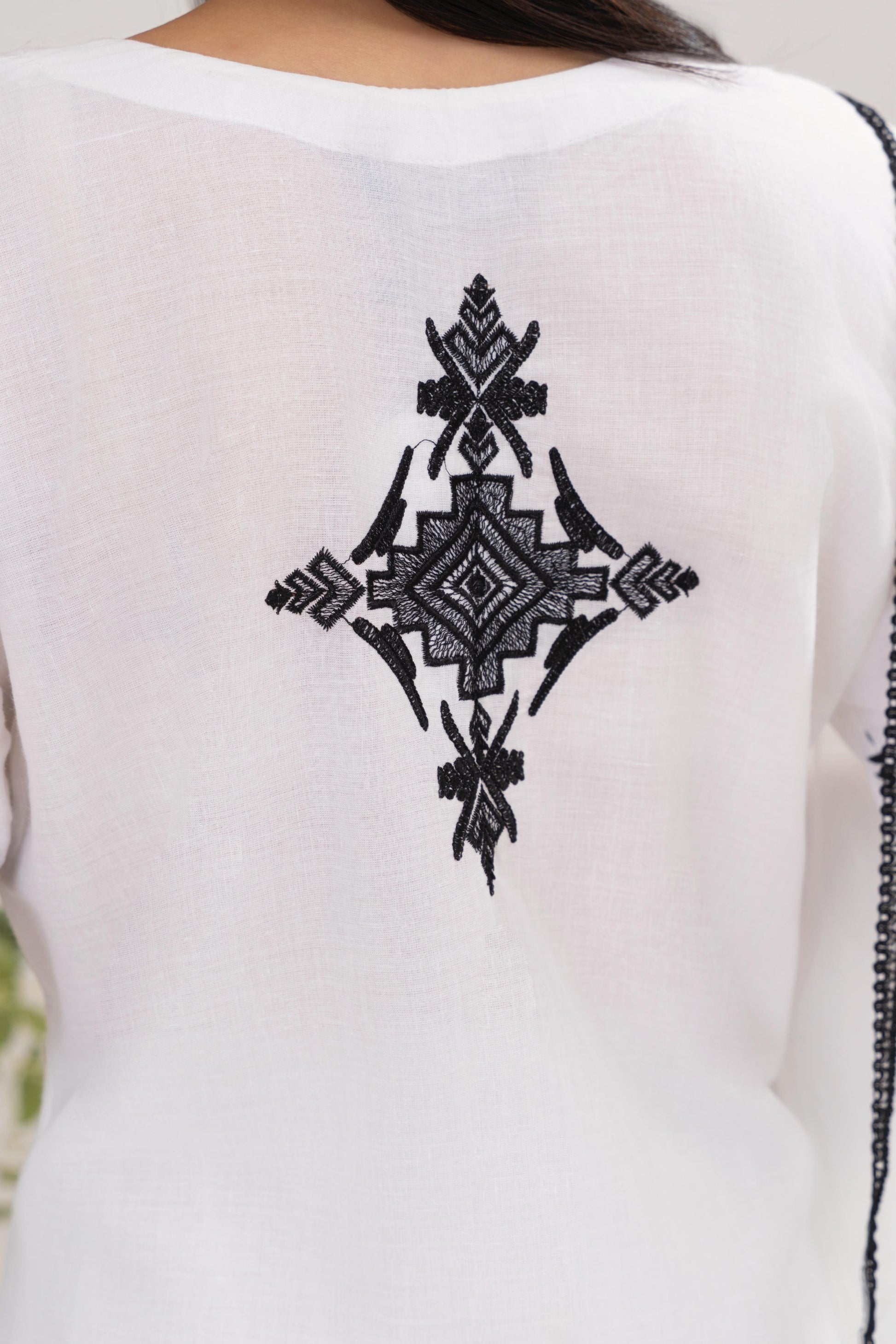 •Color: Classic White with Black Embroidery