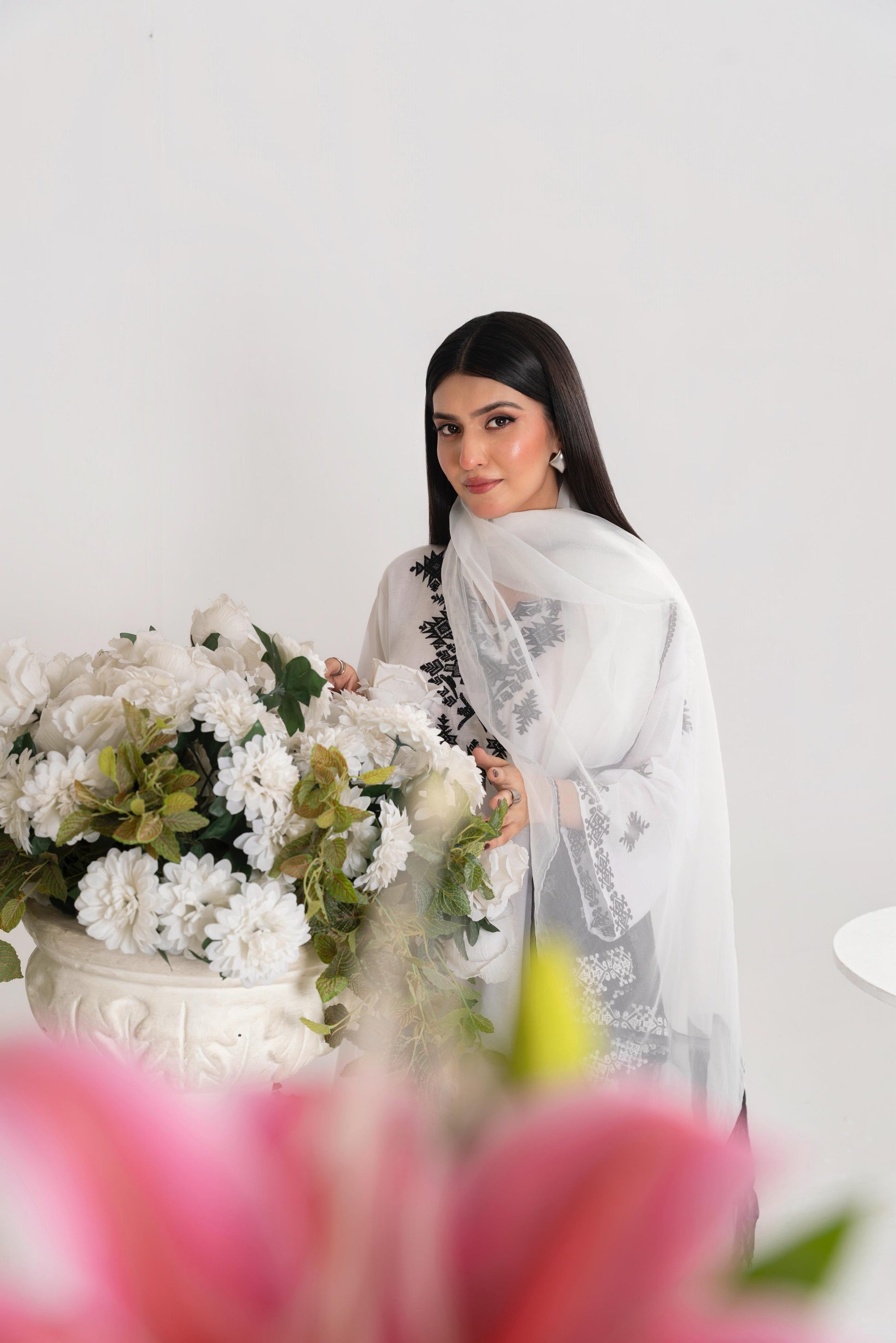 •Dupatta: Pure Organza with embroidered borders